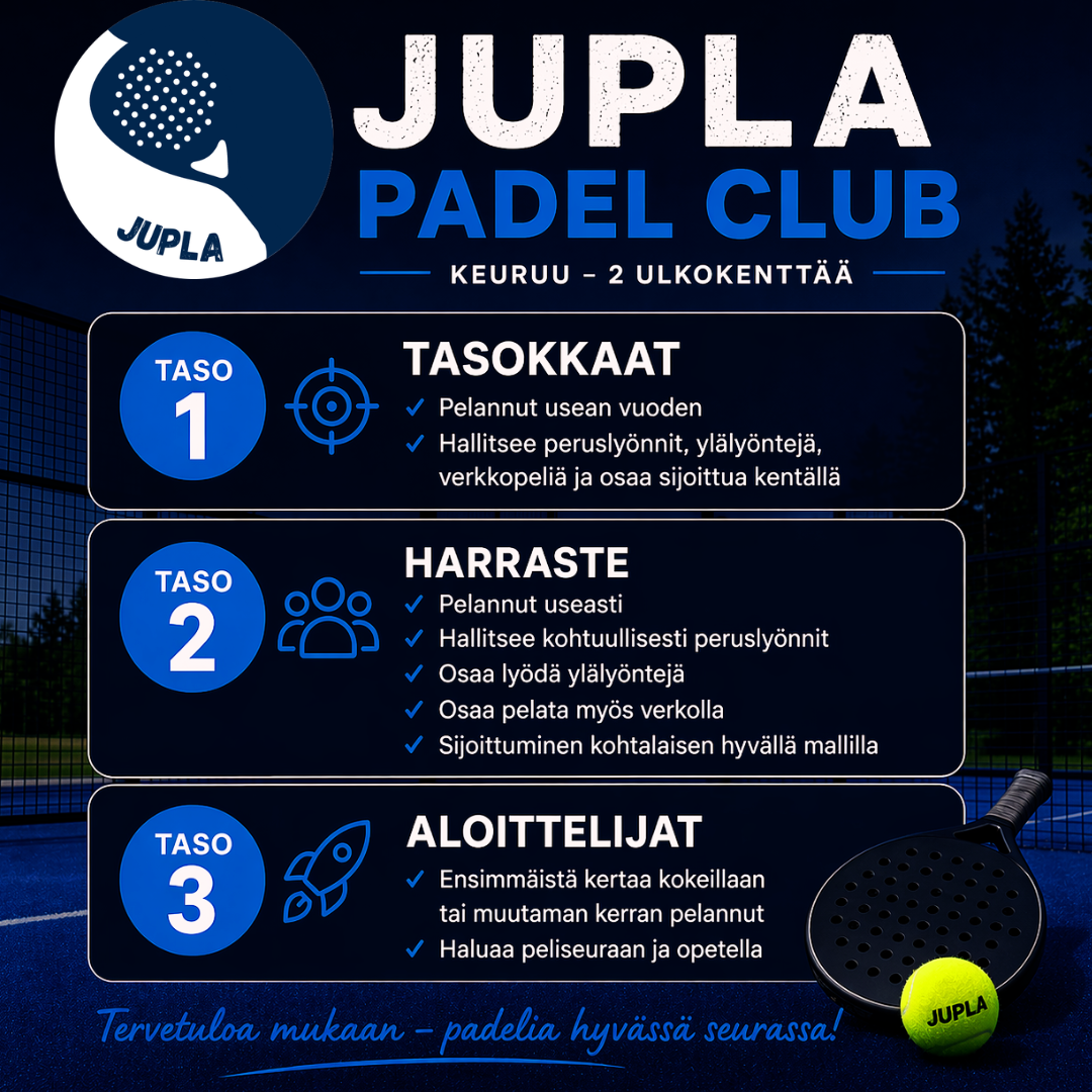 - Tee mobiilimaksu liikuntaetu sovelluksessa JupLa Padel Clubiin